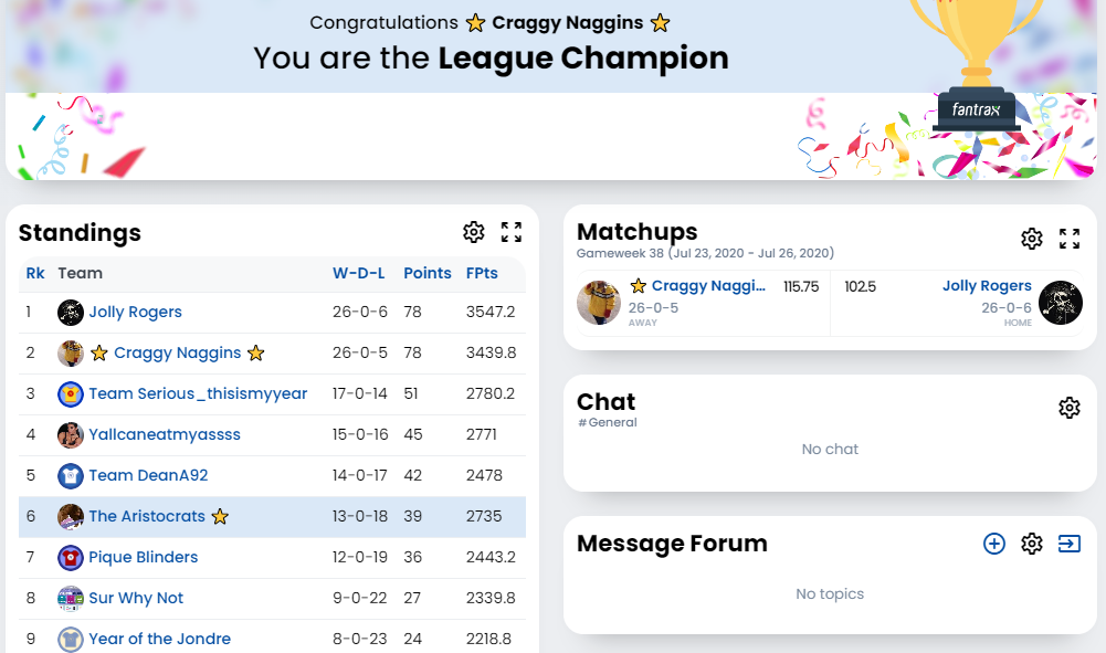 Head to Head (Fantrax) – Gary